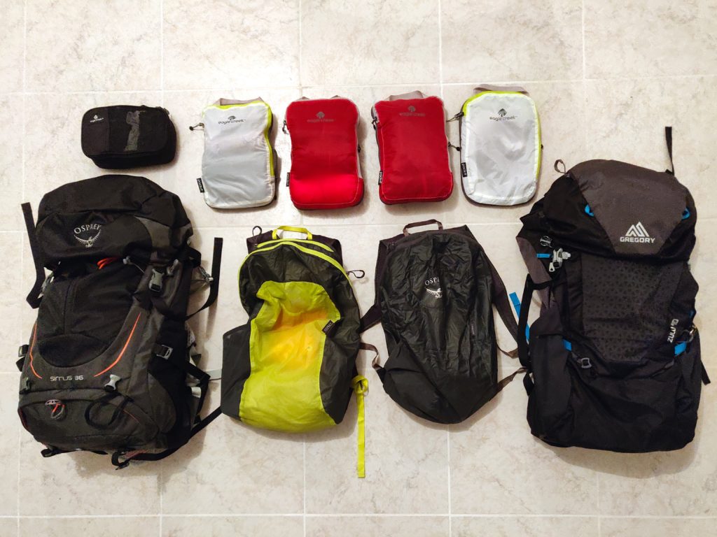 Le choix assez déterminant pour nous a été de pouvoir voyager uniquement avec des bagages en cabine : ça réduit d’autant le volume maximal des sacs principaux, et donc ce qu’on emporte 🙂