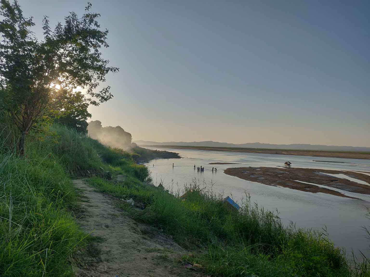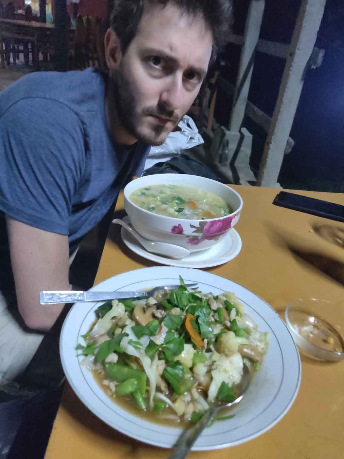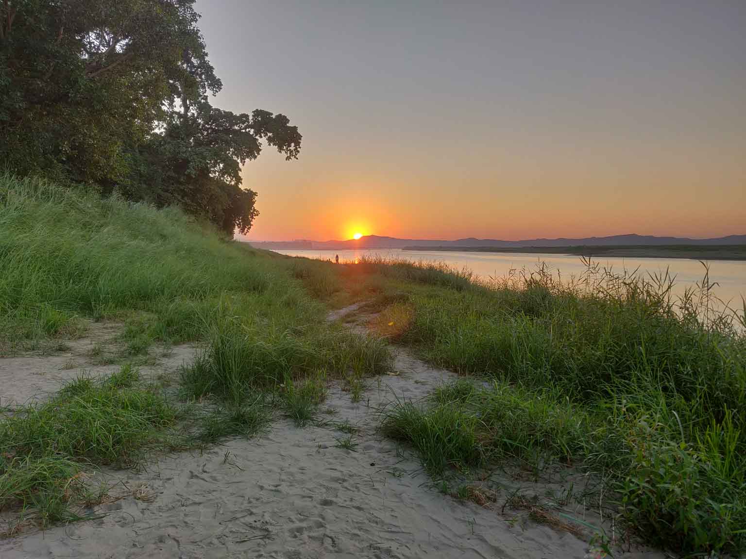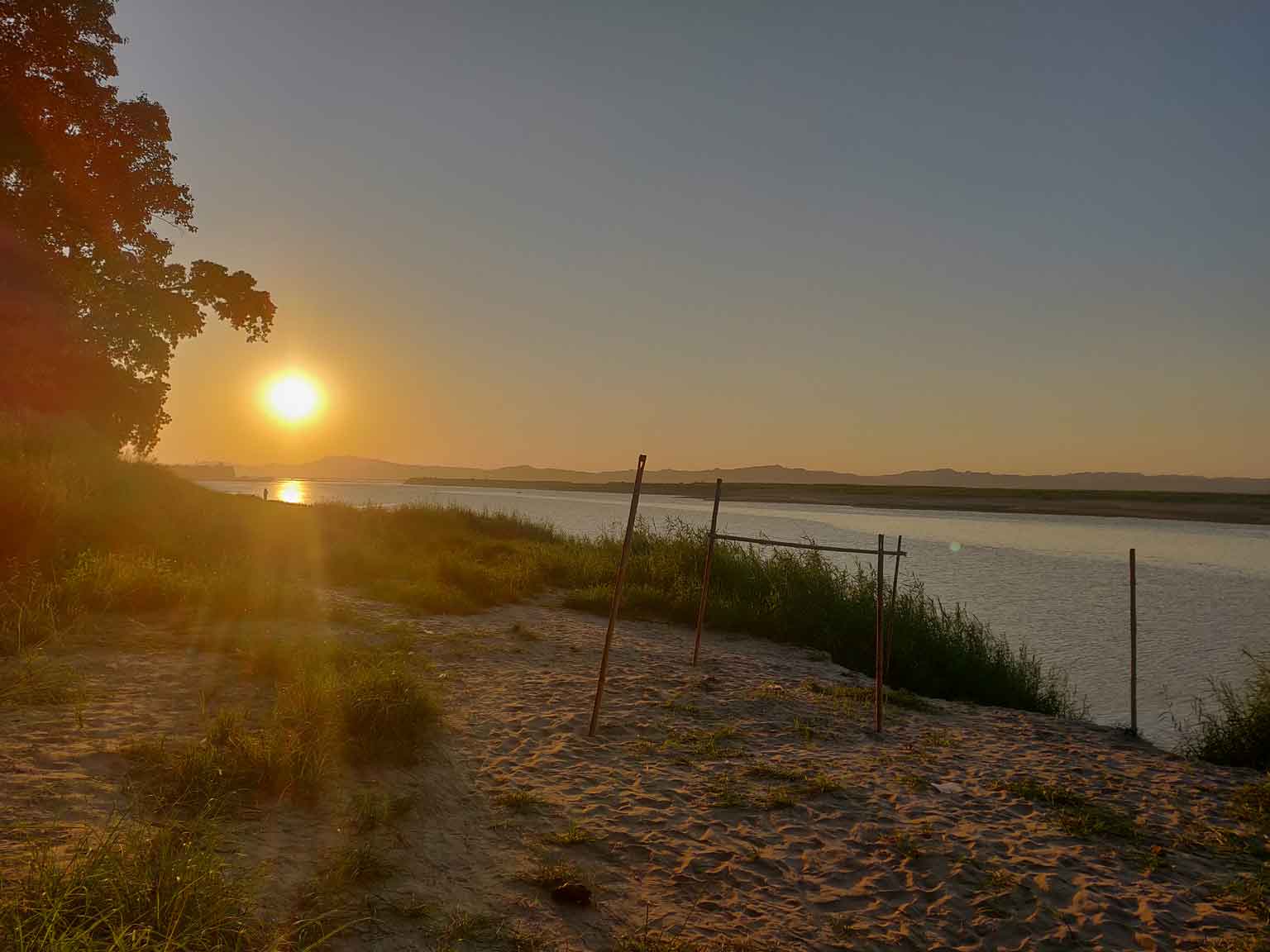 Le lendemain, c’est journée tranquillou à trier les photos et finir l’article sur Mandalay. On découvre le Comfort Restaurant à côté de l’hôtel et son Tom Kha Gai, soupe thaïlandaise de fou furieux (avec gingembre, coriandre, citron, etc.), c’est excellent ! Puis le soir on se paie le luxe d’un coucher de soleil tout seuls, en allant au bord de la rivière (ben oui, tout le monde est occupé à escalader des temples), suivi d’un petit restau un peu plus loin, sous les étoiles.