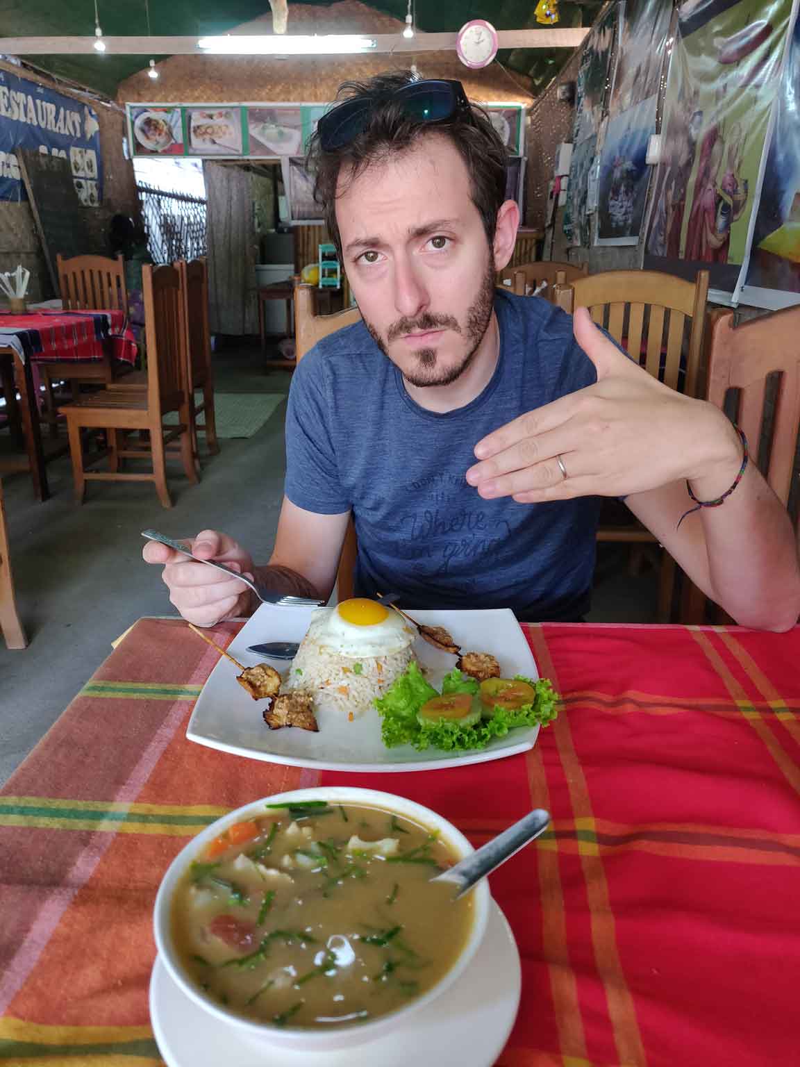 Ensuite, on laisse Sara et Juan continuer sans nous parce qu’on est un peu claqués (on s’est levés tôt !) et on rentre se reposer un peu à l’hôtel. On ressort quand ils nous rejoignent pour retourner voir le coucher de soleil tranquillou sur la rivière, mais on tarde un peu et on le manque de justesse (littéralement à dix secondes près…). Pas grave, les couleurs qui changent ensuite sont encore plus belles. On finit la journée par un dernier restaurant tous ensemble, accompagnés par Giusy et Sylvie, avant le départ de Juan et Sara le lendemain pour rejoindre leur prochaine destination Bali. C’est un peu difficile de se dire au revoir, on a vraiment passé des moments géniaux ensemble !