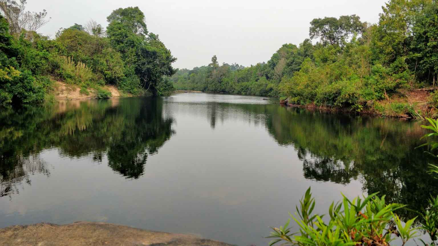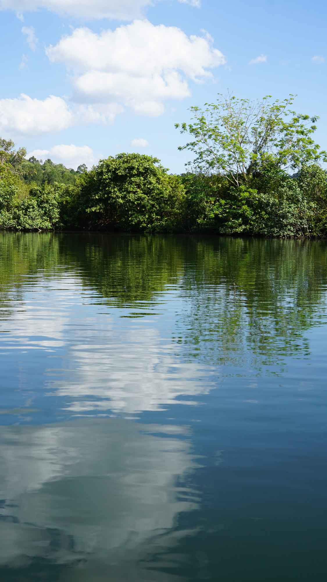 Première étape de la journée : le bateau ! D’abord à moteur pendant une heure et demi, pour rejoindre un bras du fleuve qui part vers le nord. Le jour se lève petit à petit, et on se régale de notre petit-déjeuner, c’est très sympa même si le moteur est un peu bruyant et qu’il fait frais 😉. Ensuite, on change d’embarcation et embarque dans une petite pirogue où un autre guide, debout, pagaie pour faire moins de bruit. C’est parti pour le « birdwatching », observation des oiseaux et autres animaux… Rien n’est jamais garanti, mais on a eu beaucoup de chance et notre conducteur était top : très attentif, il s’arrêtait ou revenait en arrière et nous pointait du doigt dès qu’il répétait quelque chose. On a ainsi pu voir de nombreux singes qui sautaient d’arbre en arbre, des calaos qu’on était bien contents de retrouver après Ko Chang 😀, pleins d’autres petits oiseaux et un énorme Toucan, aux ailes tellement larges qu’elles font un sacré bruit quand il vole ! Ravis, on se fait déposer par la pirogue au point de rendez-vous où nous rejoignent Kim et Sowann, qui étaient restés sur le bateau à moteur.