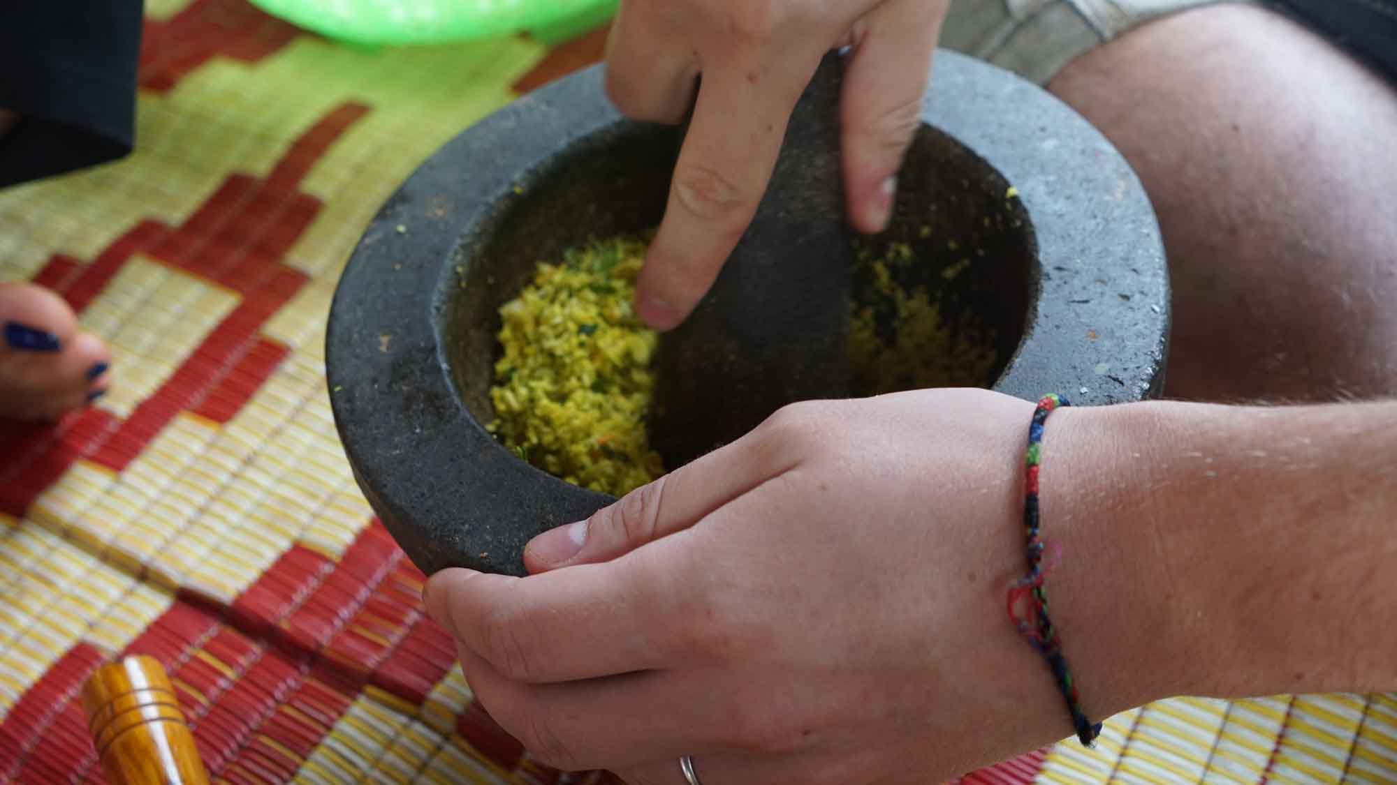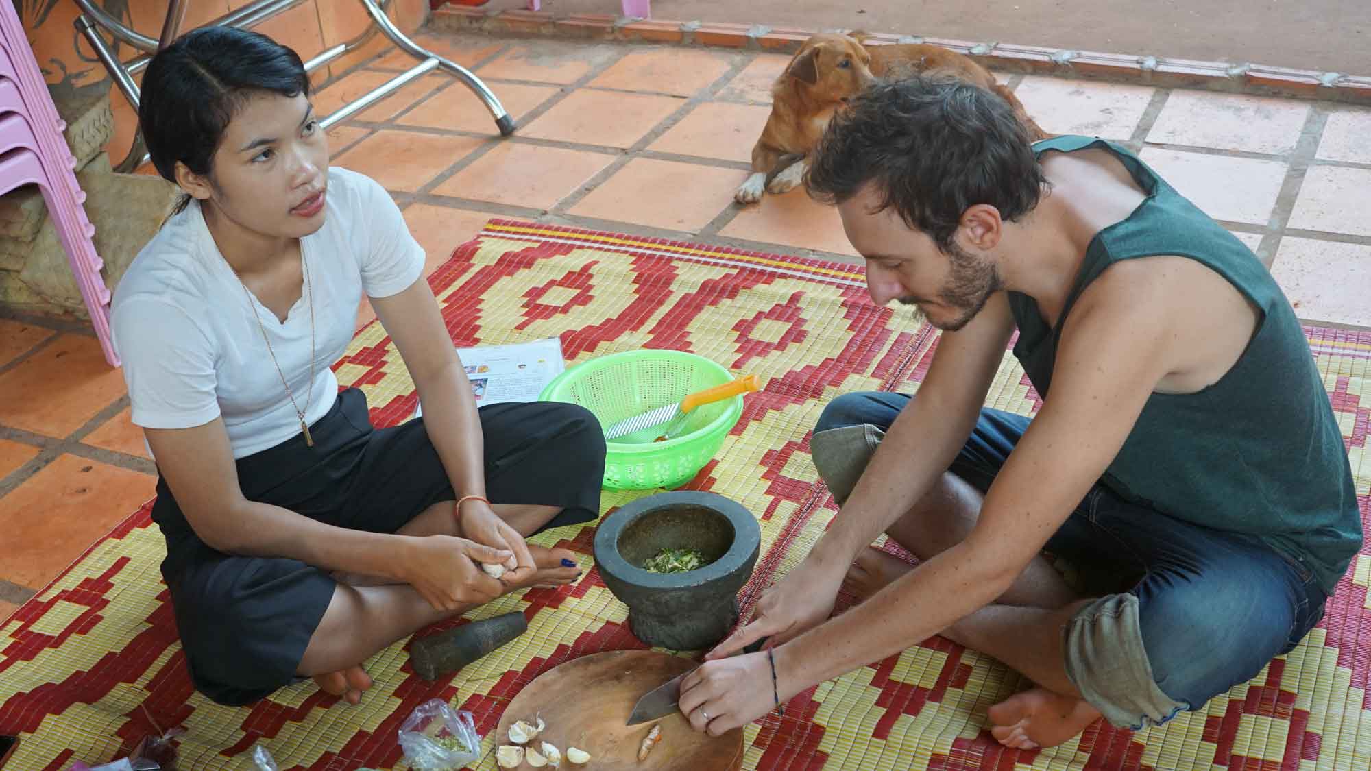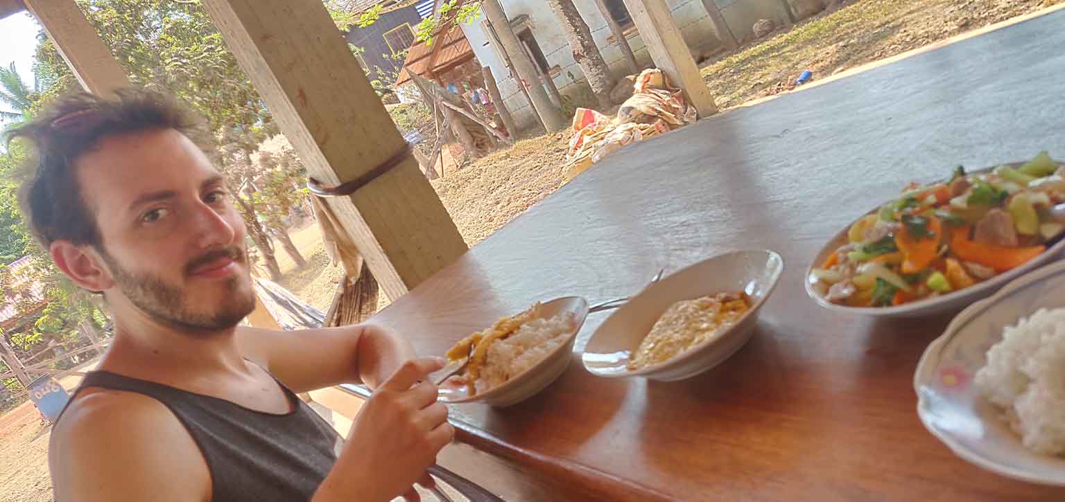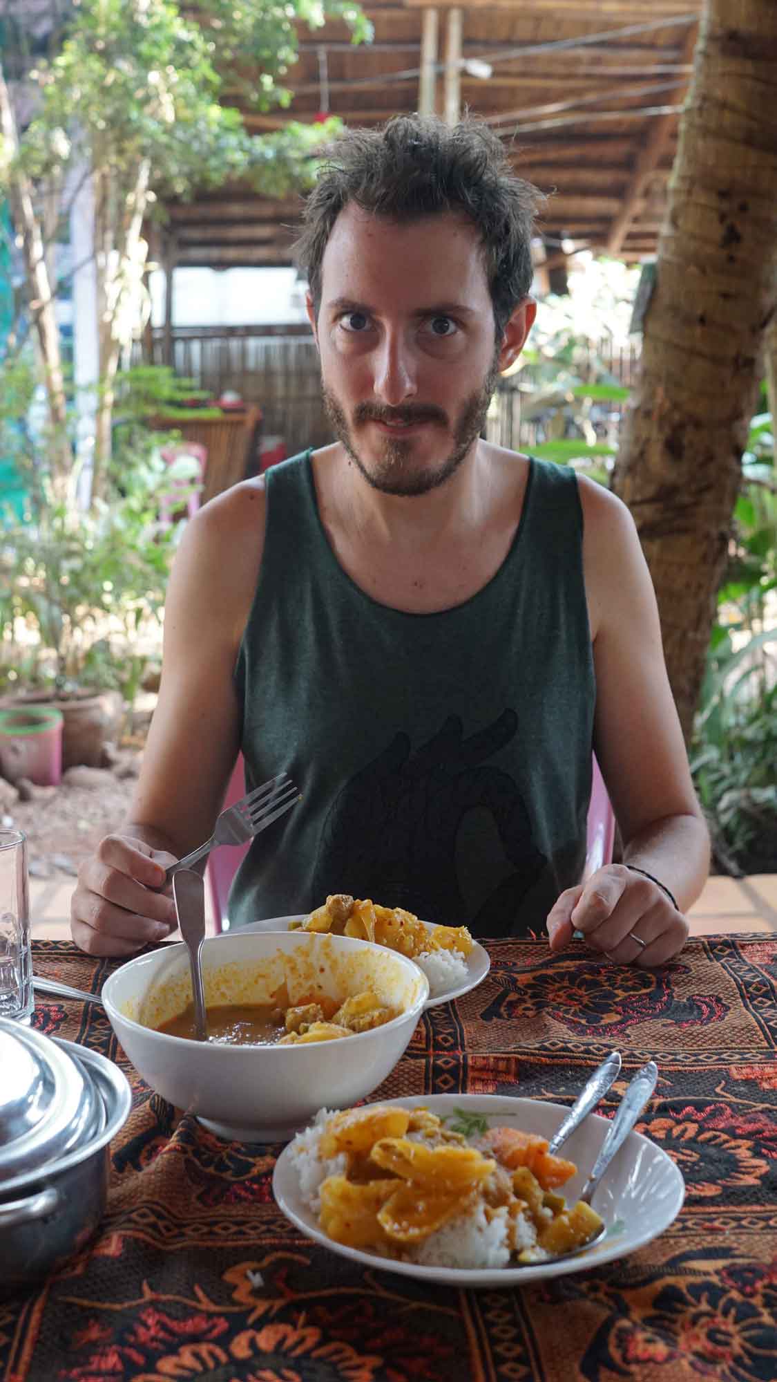 Après s’être échangé conseils et infos (Andy va à Siem Reap bientôt, et connaît bien la Nouvelle-Zélande où on va le mois prochain), on se dit au revoir le lendemain matin. Nous on restera tranquilles, à part le matin une petite séance de cuisine où on verra avec quels ingrédients se prépare le curry traditionnel.