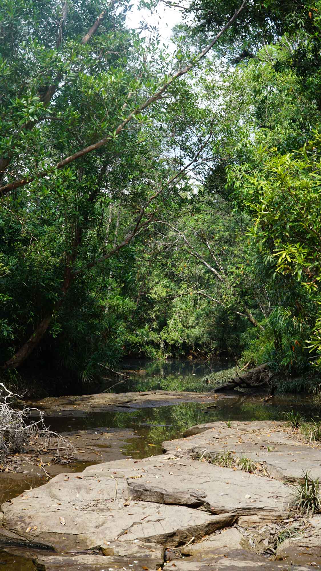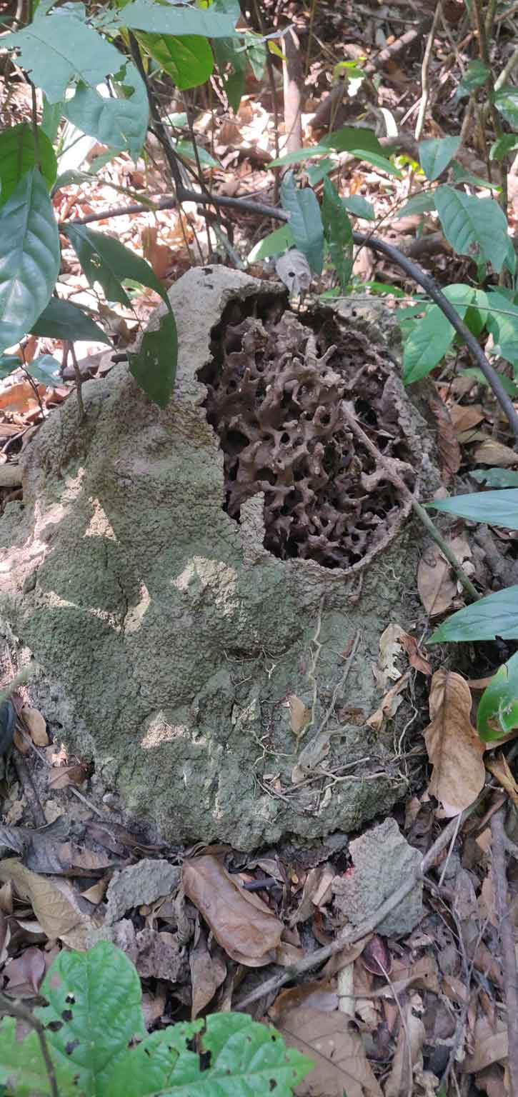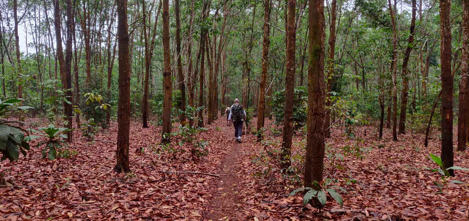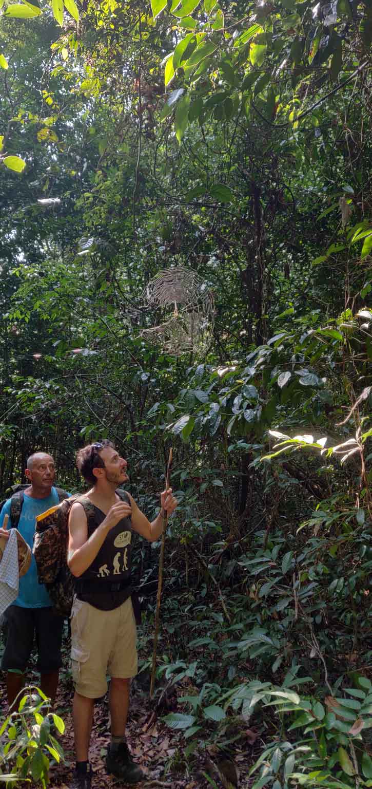 Le trek n’est pas trop difficile en soi, mais il fait très vite chaud, humide, et le soleil tape quand on sort du couvert des arbres ! On est très vite ruisselants 😊. Romain démontre encore un fois son impressionnant sens de l’observation en repérant plein d’insectes, magnifiques papillons, nids de fourmis, termitières, araignées, punaises, sauterelles… Kim, notre guide de cinquante-huit ans rigole tout le temps, parle un anglais escamoté et nous raconte entre deux chants d’oiseau un peu de l’histoire des khmers rouges, qui ont très longtemps occupé la jungle où ils ont coupé de nombreux arbres et tué les animaux. Il nous montre aussi deux grosses bouses d’éléphant, qu’on ne verra pas mais qui passent par là pendant la nuit 😁…