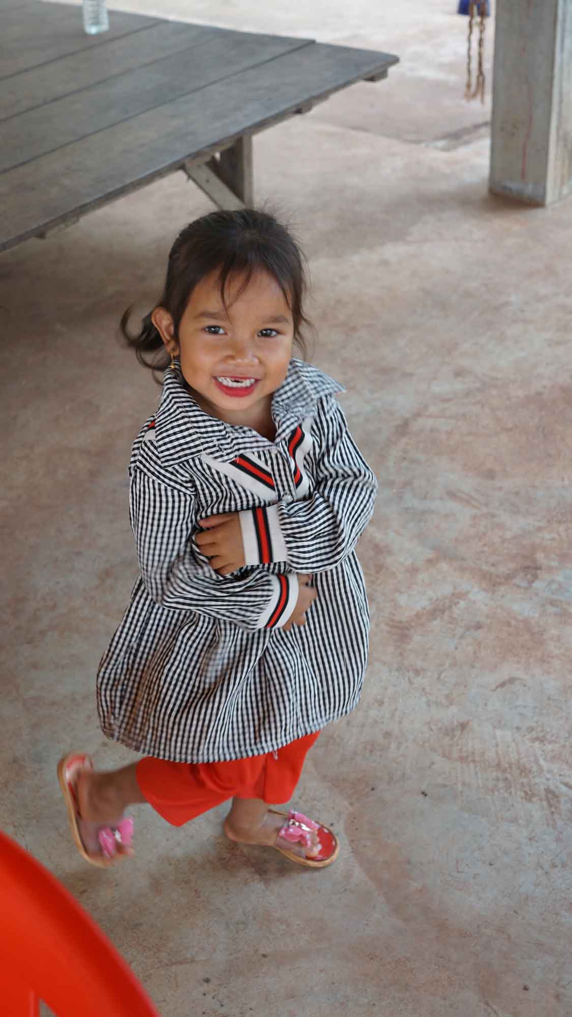 Malgré ces bémols, l’expérience était super. On a choisi d’être logés en « homestay », chez l’habitant, pour 5$ la nuit : on s’est retrouvés dans la famille de Srai Phoah, la maman, sa mère Saithi, et ses deux boules de mignonneté Sinni, 4 ans, et Wayut, 7 ans. Évidemment, Camille a craqué tout de suite, et elle a passé une bonne partie de ses après midi à danser, dessiner, jouer à cache-cache ou au ballon (improvisé avec un débardeur en boule dans un mouchoir en tissu noué 😛). La petite fille Sinni était particulièrement à-cro-quer.