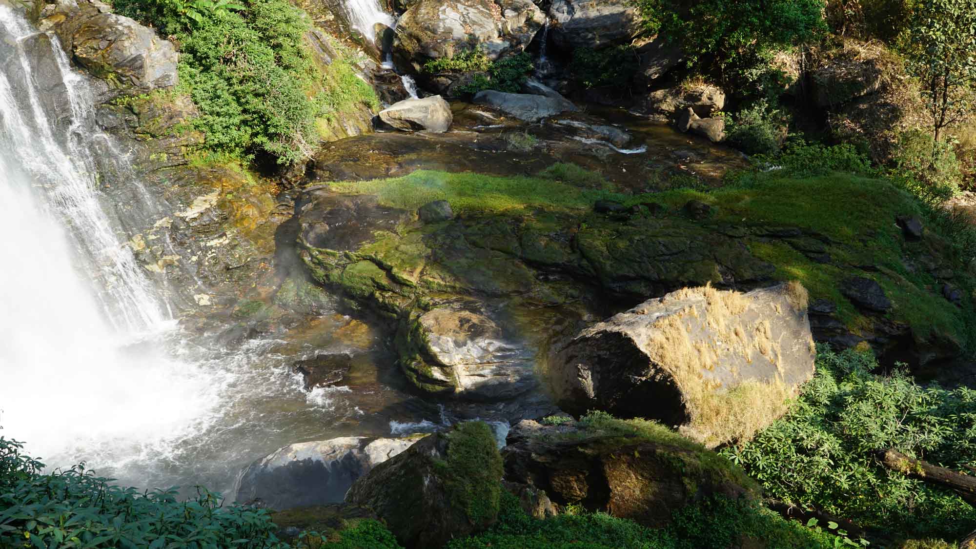 Premier arrêt à la cascade de Wachirathan, très jolie. On n’est pas restés très longtemps parce que les mini-bus arrivaient aussi, et qu’on n’avait pas envie de se retrouver au milieu de la foule tout de suite. On a donc zappé le village « traditionnel » plus loin et remis les autres cascades à plus tard, pour tracer vers le sommet.