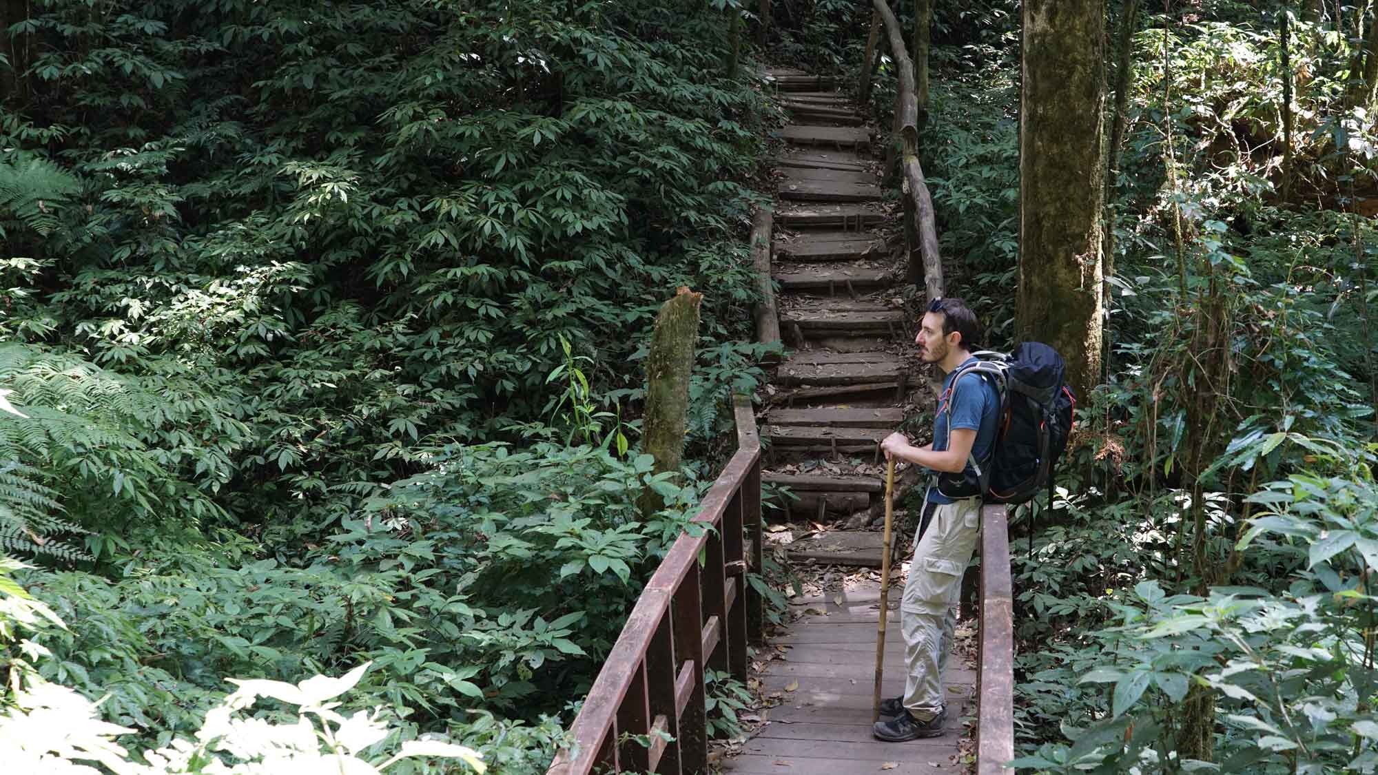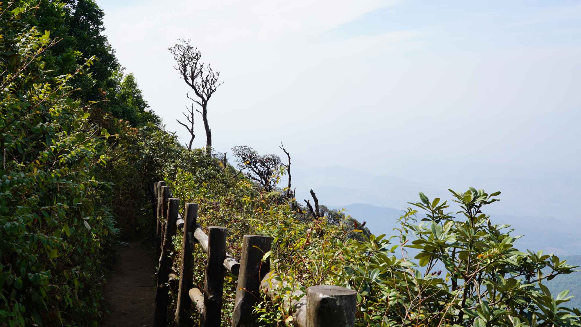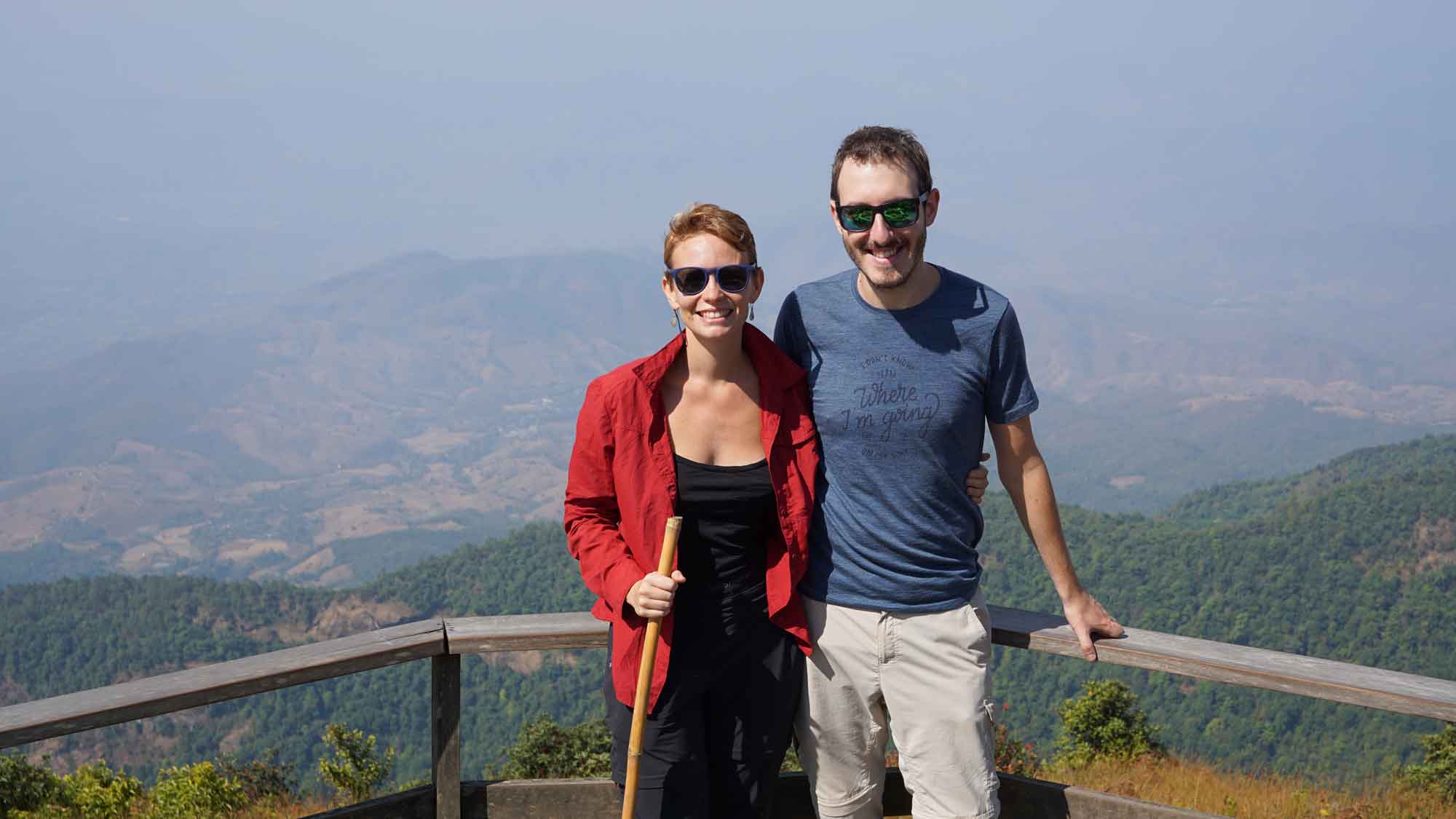 On arrive vers 10h à côté des Pagodes et du Kew Mae Pan Trail, jolie boucle de randonnée d’environ deux heures, qui fait le tour du sommet. Il faut payer un « guide » mais ça ne nous dérange pas, même si on aurait bien aimé avoir quelqu’un qui parle anglais pour discuter 😊. Lui était très jeune, 19 ans, et devait connaître dix mots en tout, donc les tentatives de conversation de Romain n’ont pas été très fructueuses. 😅