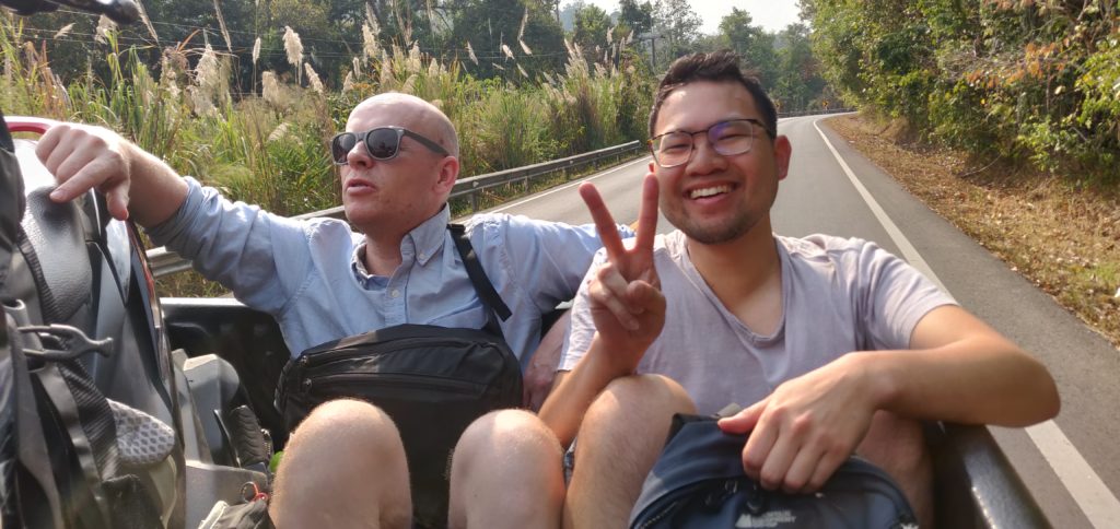 La plupart des gens font le circuit en visite organisée d’un jour depuis Chiang Mai, avec un mini-van qui les transporte d’un point d’intérêt à un autre. Sauf que c’est cher, que ça fait beaucoup de transport en un jour, et qu’on n’aime pas les tours organisés. Bon.