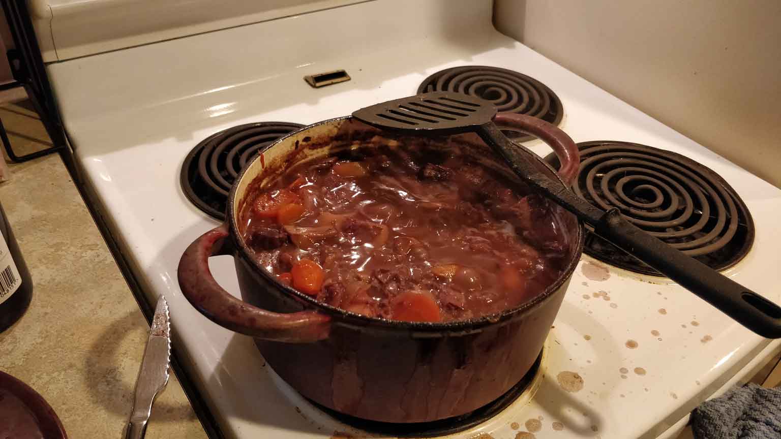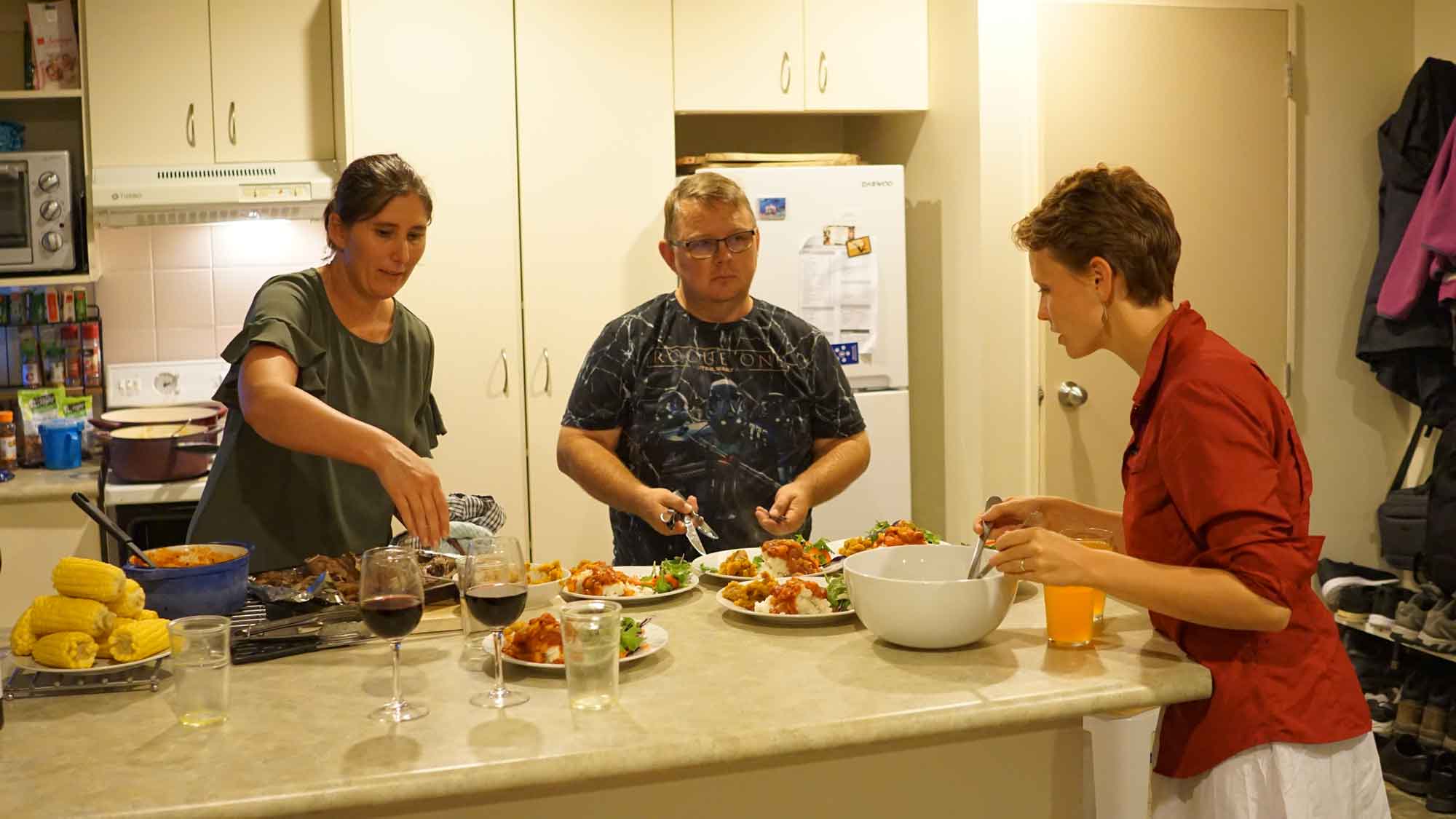 C’est ainsi que nous passons la soirée chez Corneli et Norman, un couple adorable d’Afrique du Sud arrivé en Nouvelle-Zélande il y a trois ans avec leurs deux fils. Ils nous cuisinent des plats sud-africains, on se régale et on s’entend super bien ! On y retournera deux jours plus tard, et cette fois c’est nous qui cuisinerons : boeuf bourguignon pour Romain, et tarte aux pommes par Camille (malgré une pâte feuilletée HYPER bizarre, la seule qu’on ait trouvée au supermarché 😅). Ça nous a vraiment fait du bien de passer ces deux soirées chez eux, il étaient incroyablement accueillants et généreux (ils nous ont prêté plein d’affaires pour le séjour) et on se sentait à la maison. 😊