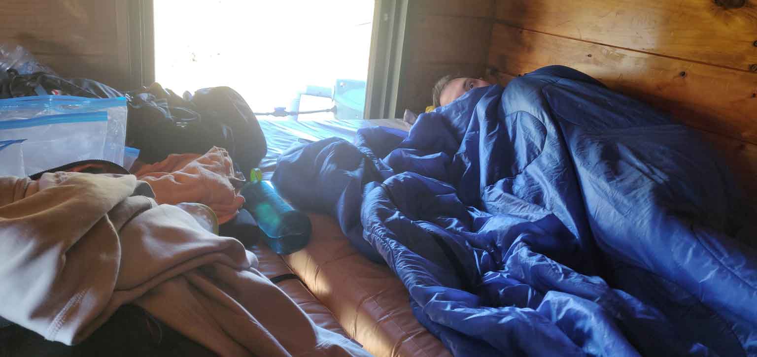 On arrive au camping où on passe la nuit vers 16h30. La température en altitude ne pardonne pas mais on est équipés : Camille se paie le luxe d’une sieste sous un arbre, emmitouflée dans sa doudoune et confortablement installée sur les matelas du van. Puis c’est l’heure de préparer les sacs : nourriture pour les trois jours, vêtements au minimum, et tous les accessoires « au cas où » pour de la balade en montagne. C’est long de penser à tout, d’autant que c’est notre première expérience du genre !