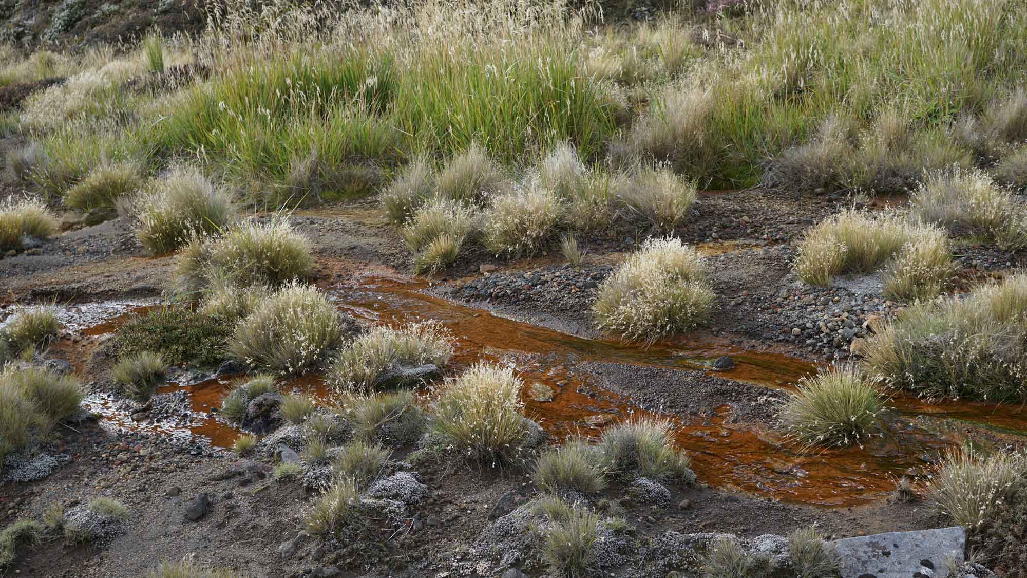 Après une dernière station toilettes, on continue, le long d’une rivière chaude, avec la végétation qui reprend ses droits, notamment de très jolies fleurs violettes. On arrive fourbus mais ravis à 18h30 au dernier refuge, où la ranger nous accueille avant de faire un petit speech pour raconter aux autres randonneurs ce qui les attend le lendemain… et qu’on vient de faire. Apparemment le temps se gâte un peu pour eux au sommet le matin, donc elle conseille de ne pas partir trop tôt le lendemain. Romain blague en leur disant que ça va être horrible mais ils ne lui en veulent pas, l’ambiance est très bon enfant, et on se dit que ça aurait été chouette, de faire le parcours comme ça, avec des gens qu’on retrouve tous les soirs aux refuges successifs. 🙂