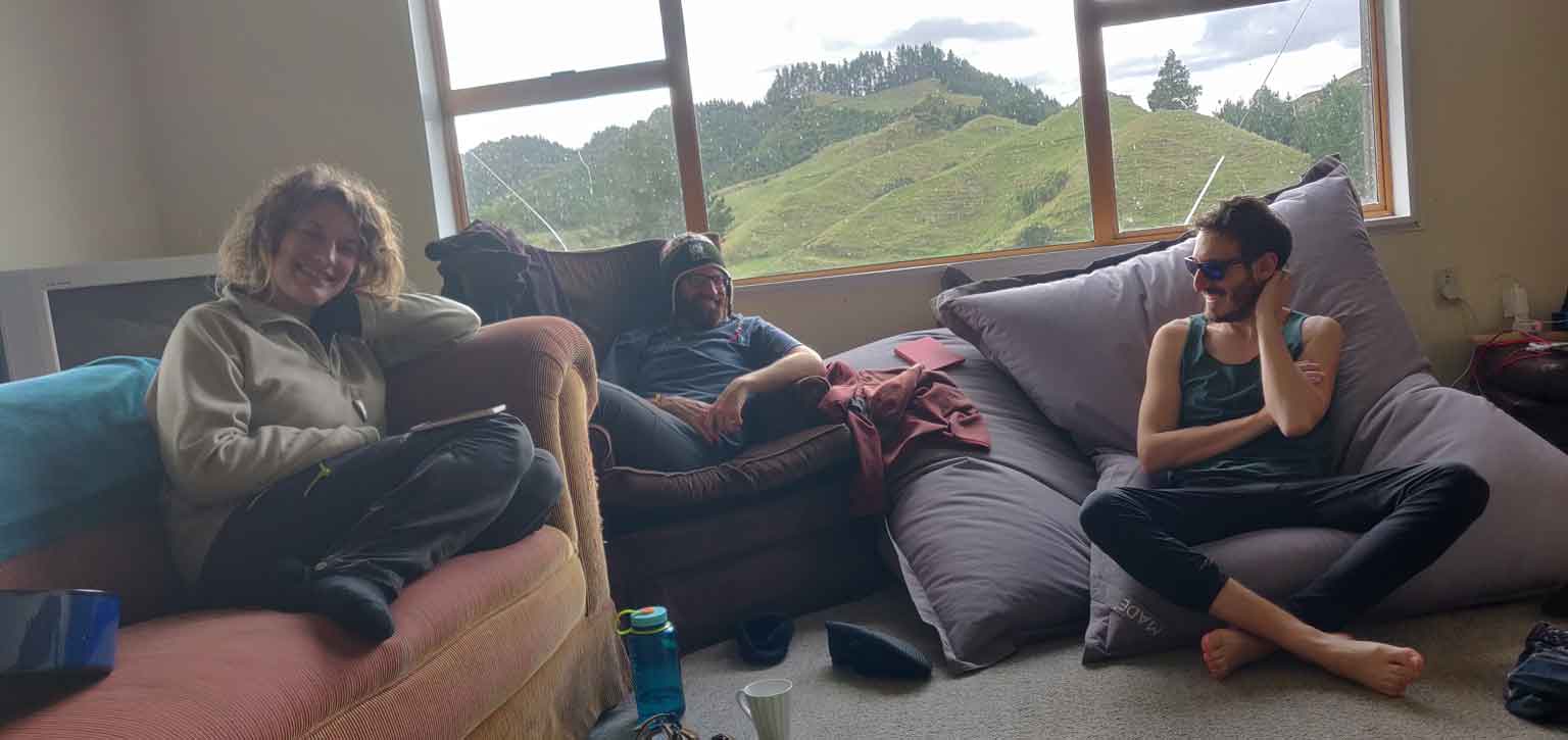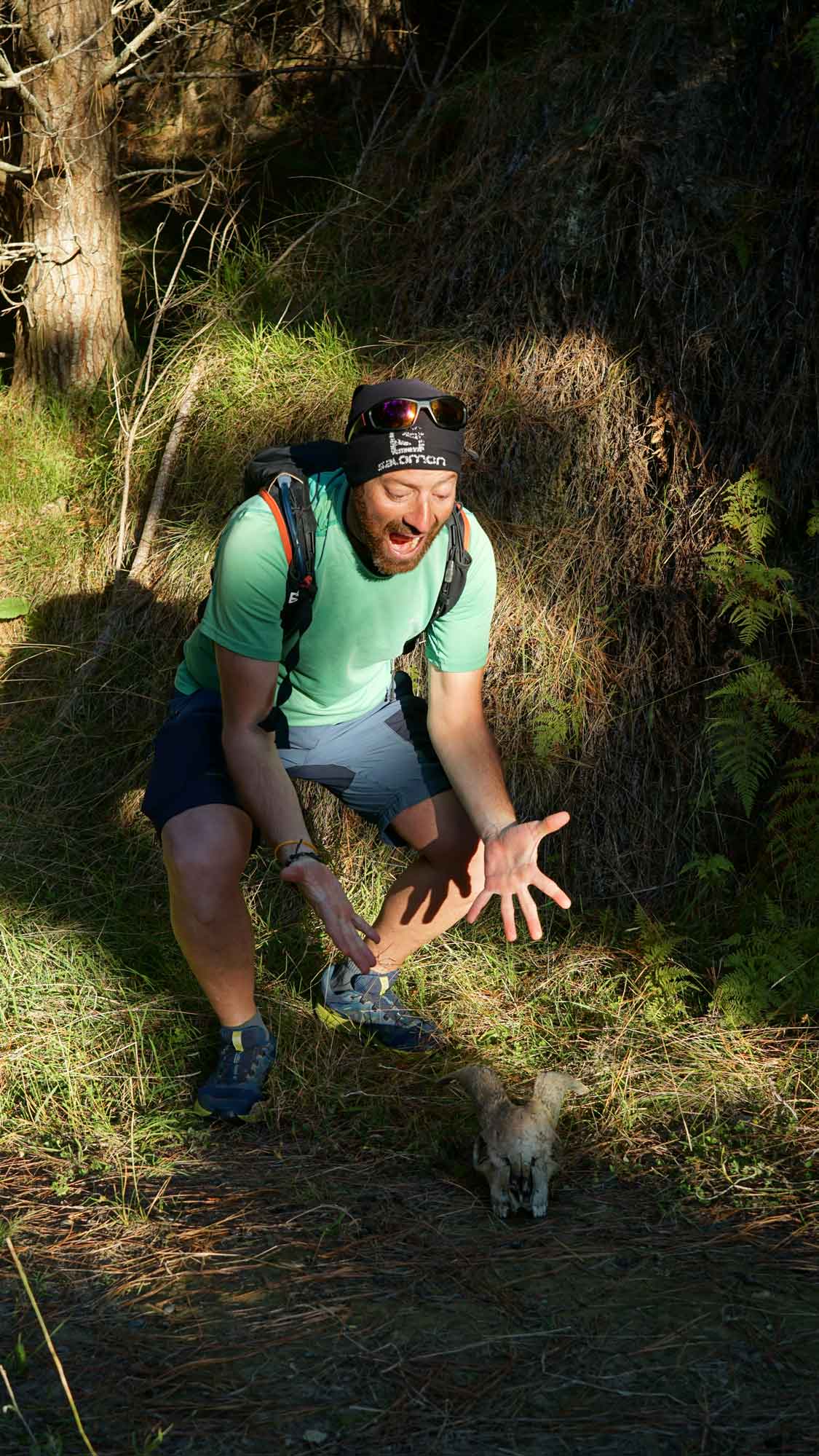 Camille a eu une expérience « 100% campagne néo-zélandaise » : un jour, un voisin d’une ferme assez loin est passé pour nous dire que dans sa séance de chasse il avait abattu un sanglier qu’il allait devoir transporter jusqu’au quad. On l’a donc accompagné avec Juan et Sara, et Camille a transporté sur quelques dizaines de mètres le sanglier, 44kg sur son dos. Ah oui, et il n’avait plus de tête (c’est lourd et ça encombre). Ce qui a donné des photos… intéressantes. 😁