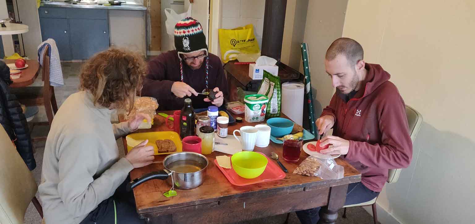 Nous habiterons tous les quatre ici, le temps que le confinement durera, soit deux mois. Nos deux vans sont gentiment garés devant la maison, et on commence par un grand ménage : la maison est la plupart du temps inhabitée, et il y a de quoi faire 😁 . Après un petit temps d’adaptation, nous prenons nos marques : chaque couple a sa chambre, il y a un grand salon avec cuisine américaine, une salle de bains, des toilettes, et une machine à laver, bref tout ce qu’il faut ! Le seul bémol, c’est que la maison est très froide (ici, c’est le début de l’hiver…) et que le poêle ne fonctionne pas, mais John veille au grain et nous amène quantités de couverture et deux petits chauffages électriques qui serviront beaucoup ! Notre ange gardien du bout du monde. 😊