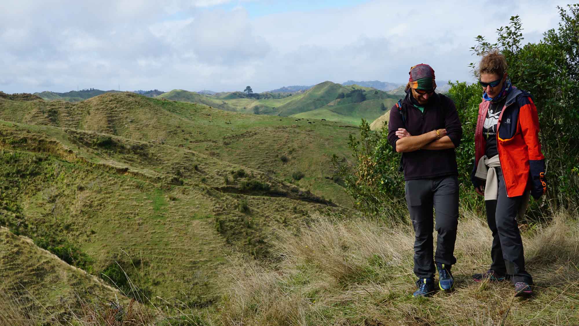 La forêt est très belle aussi, et regorge d’oiseaux dont l’incroyable tui, au chant complètement absurde (on dirait une horloge cassée), et surtout de chèvres sauvages qui parcourent les chemins en bandes de quatre ou cinq, et qui sautent dans la pente dès qu’elles nous voient. C’est vraiment impressionnant de les voir filer ainsi, mais apparemment elles sont une vraie plaie pour les fermiers car elles broutent toute l’herbe des terrains prévue pour les vaches. Il y a même un paon qui s’est installé dans le coin, et qu’on a croisé par hasard en se baladant un jour jusqu’à la rivière à l’extrémité du terrain (une heure et demi de marche tout de même !).